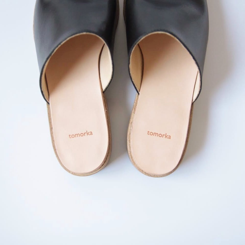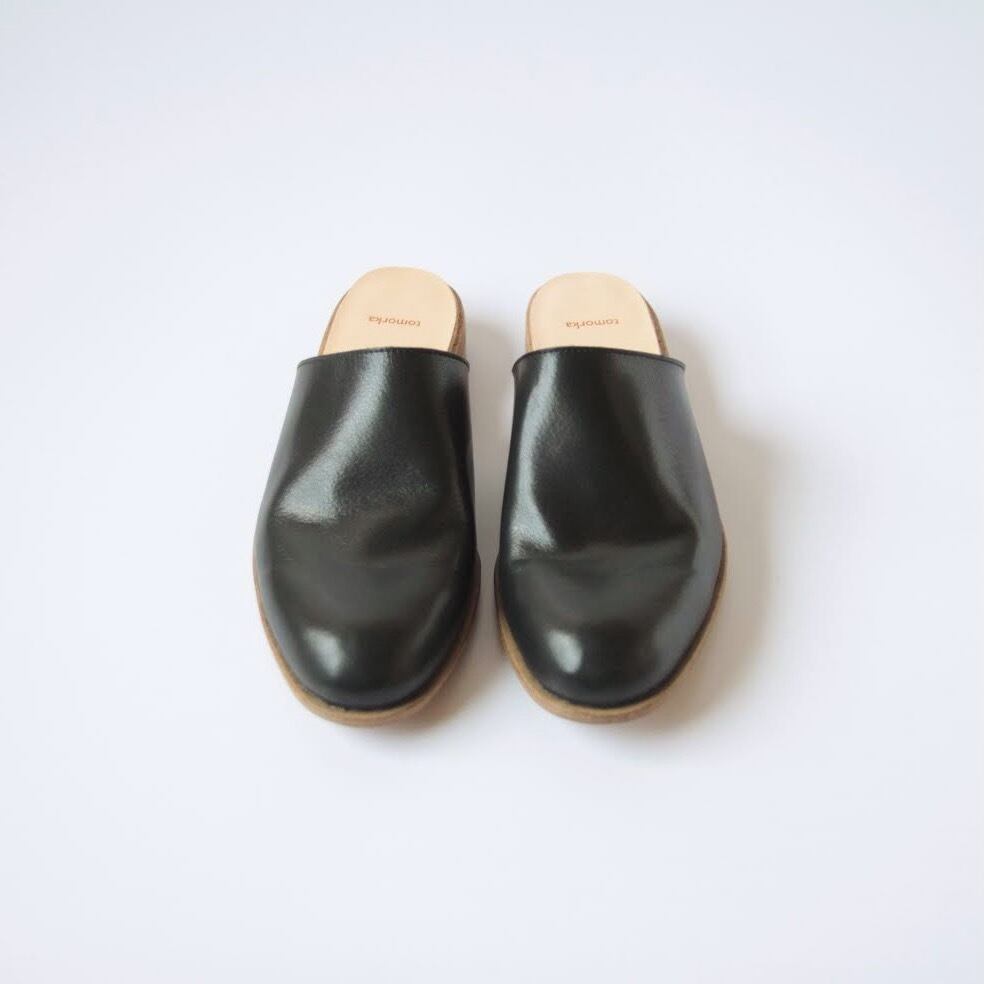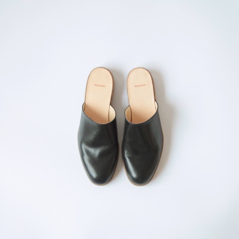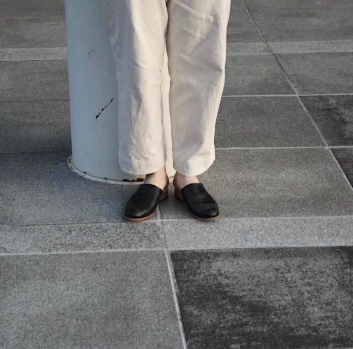 デザイナー自身が工房とお店を行き来する際に、脱ぎ履きしやすく、作業中や店内でもきちんと履けるものが欲しいと思ったのをきっかけにデザインしたシューズです。