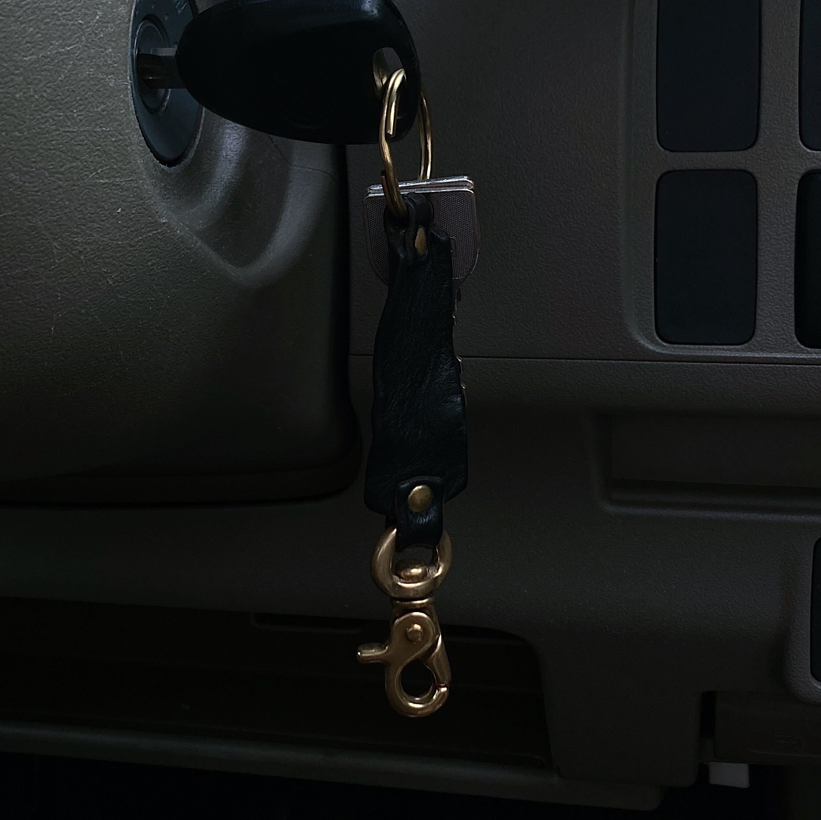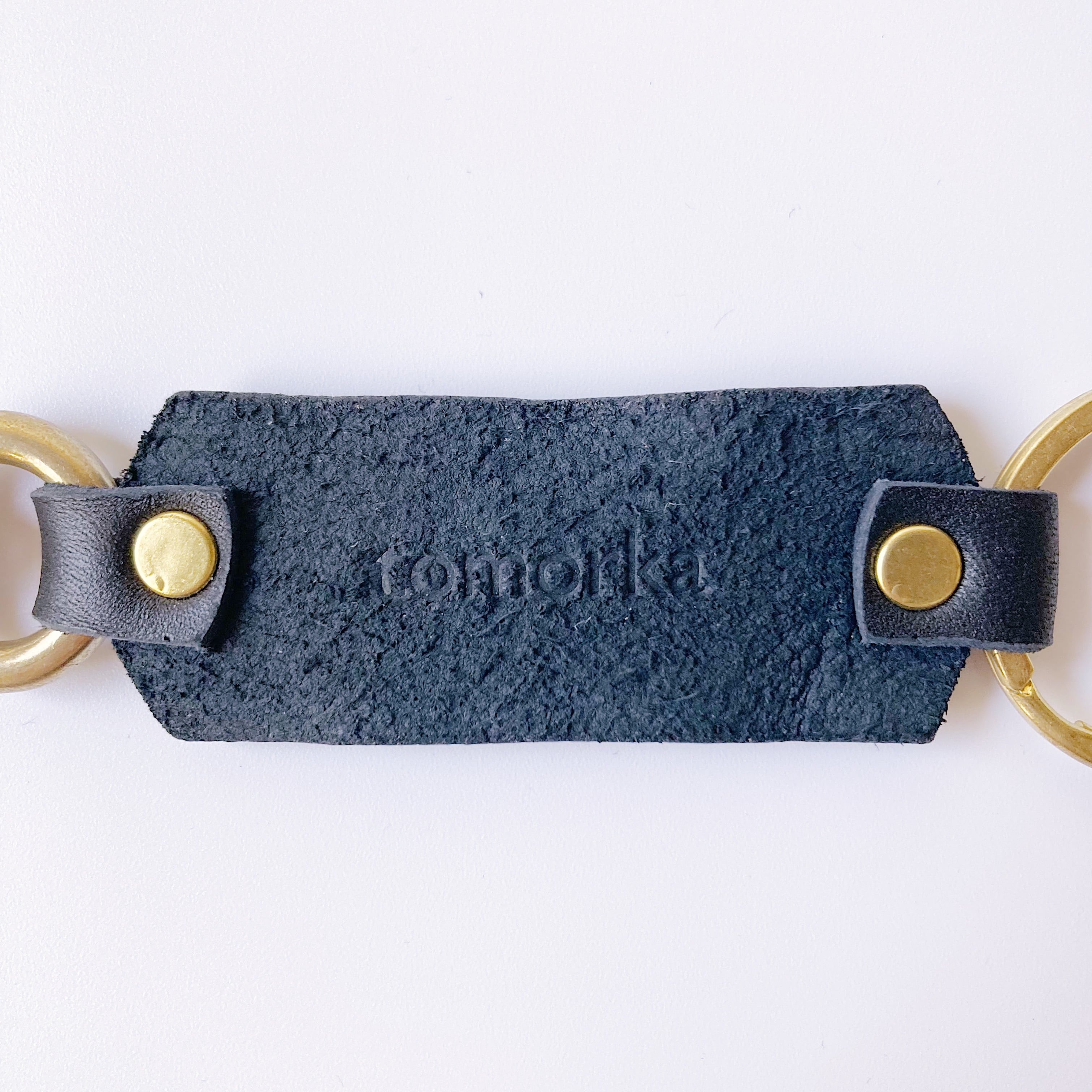 真鍮製のリング・レバースナップと一つ一つ丁寧に洗いをかけた天然鞣し革のキーリング。