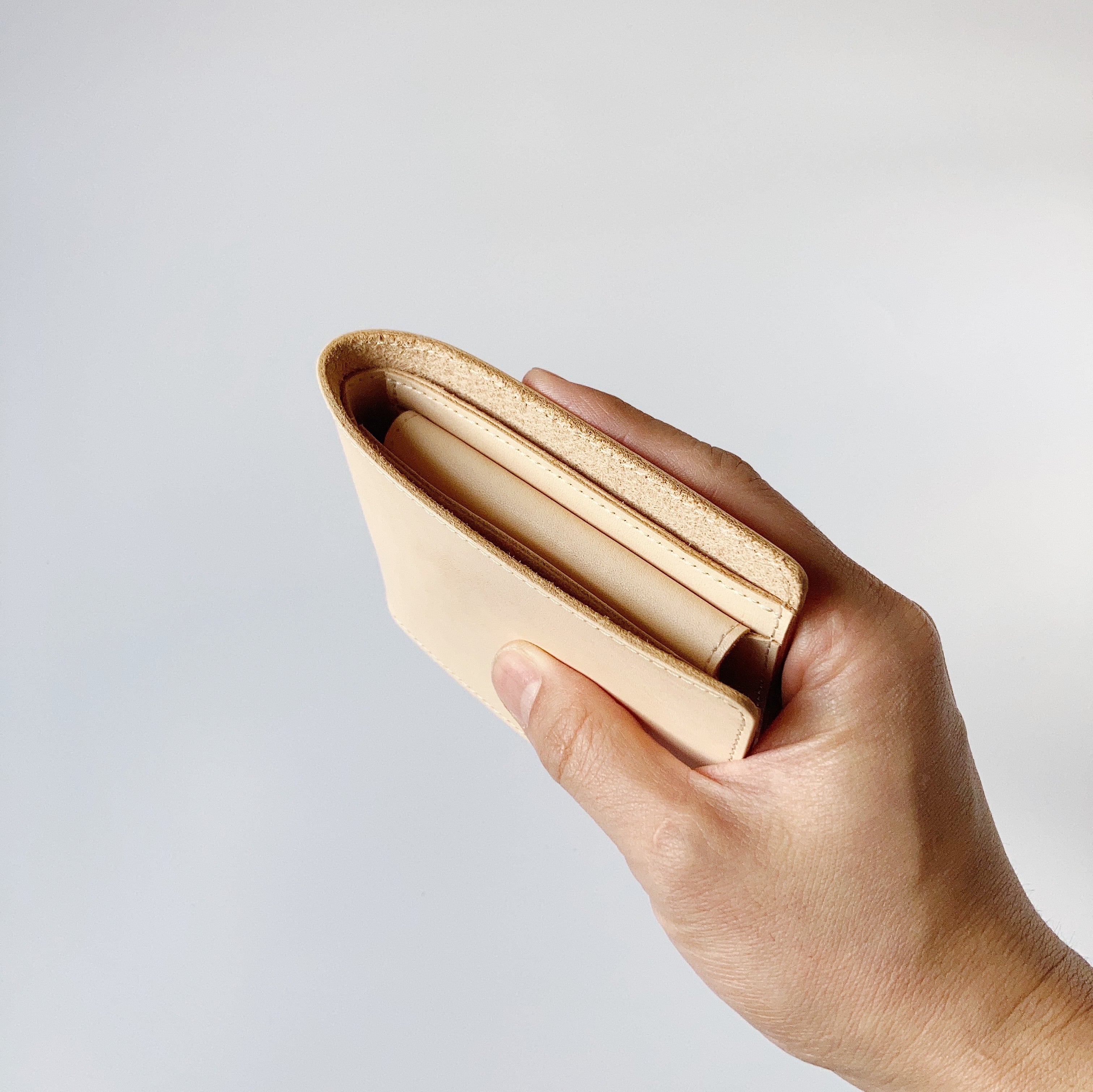 兵庫・姫路産の天然鞣し牛革を使用した二つ折りウォレット。